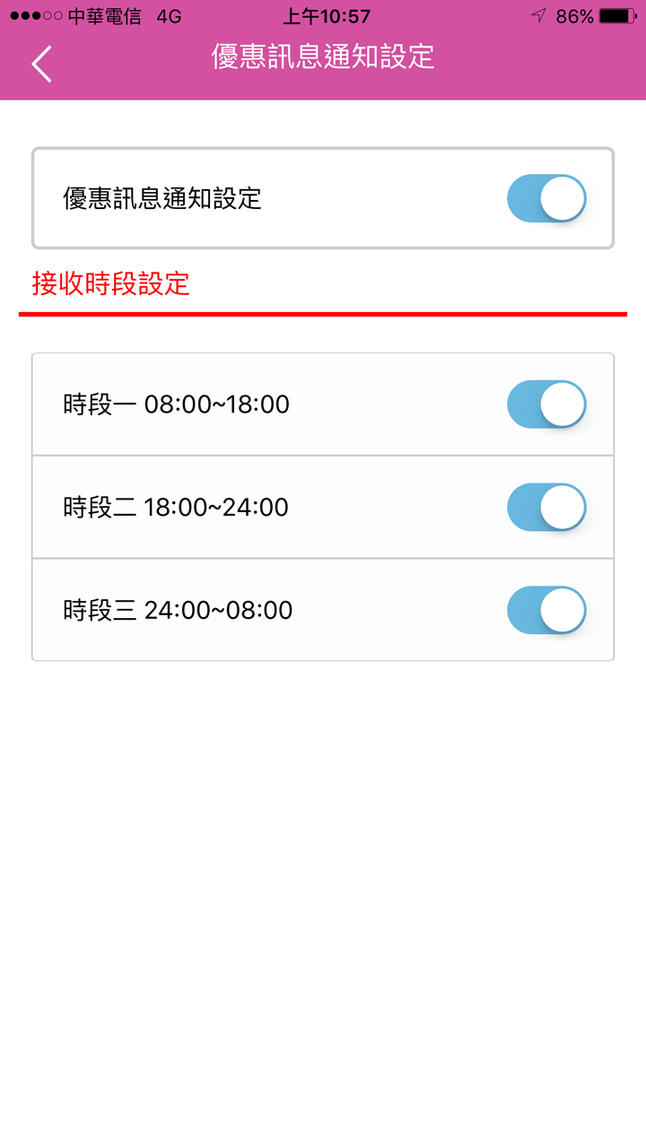 7. 優惠訊息通知可設定接收時段