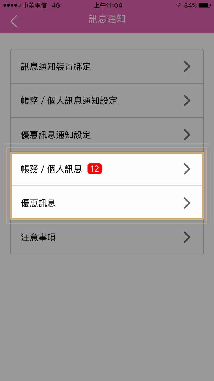 6. 帳務/個人訊息通知可設定接收時段及接收項目