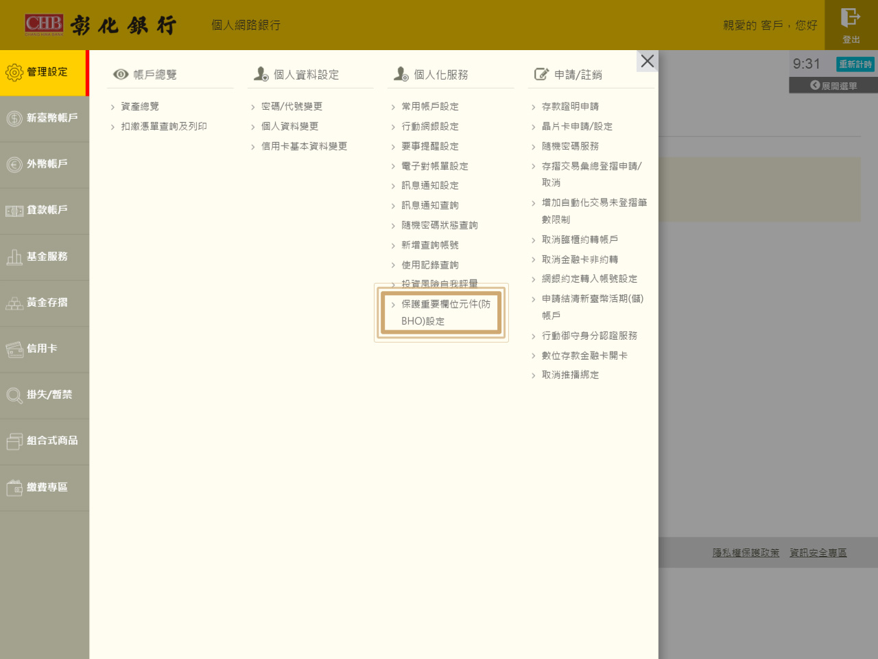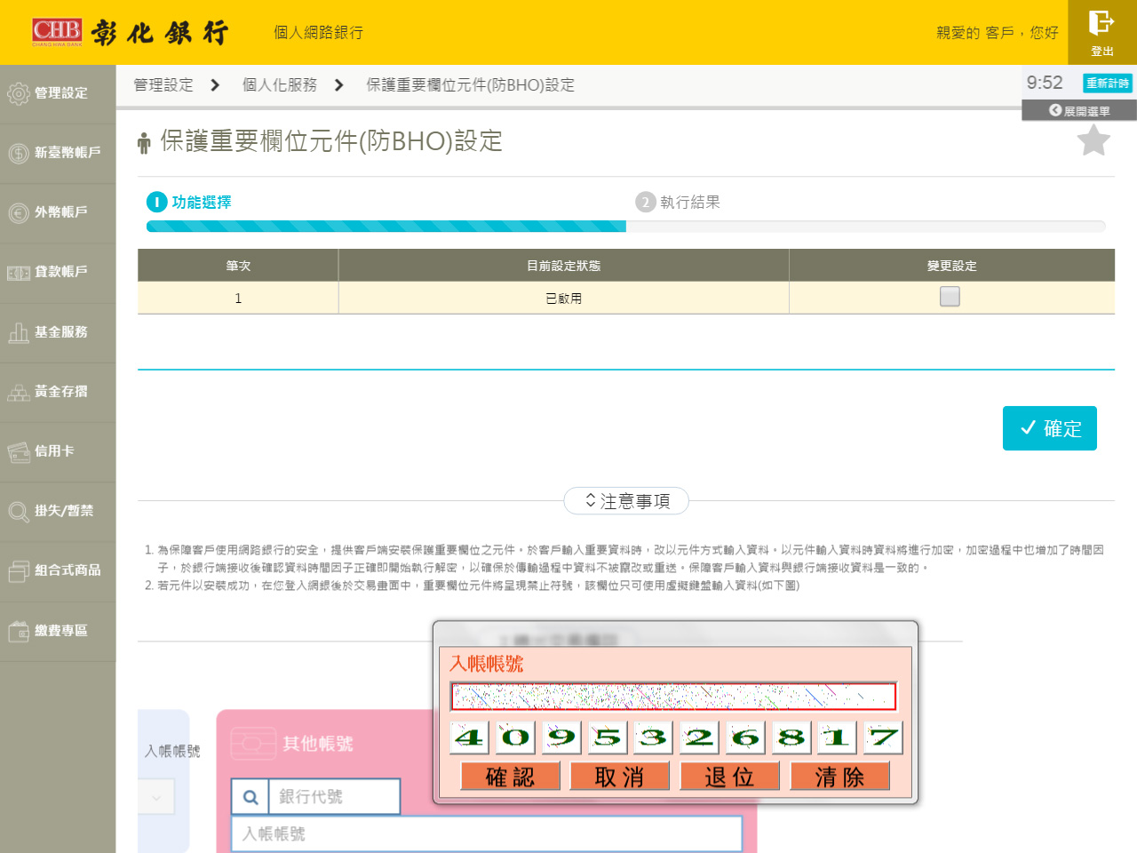 彰化銀行網路銀行保護重要欄位元件(防BHO)如何關閉/開啟?
