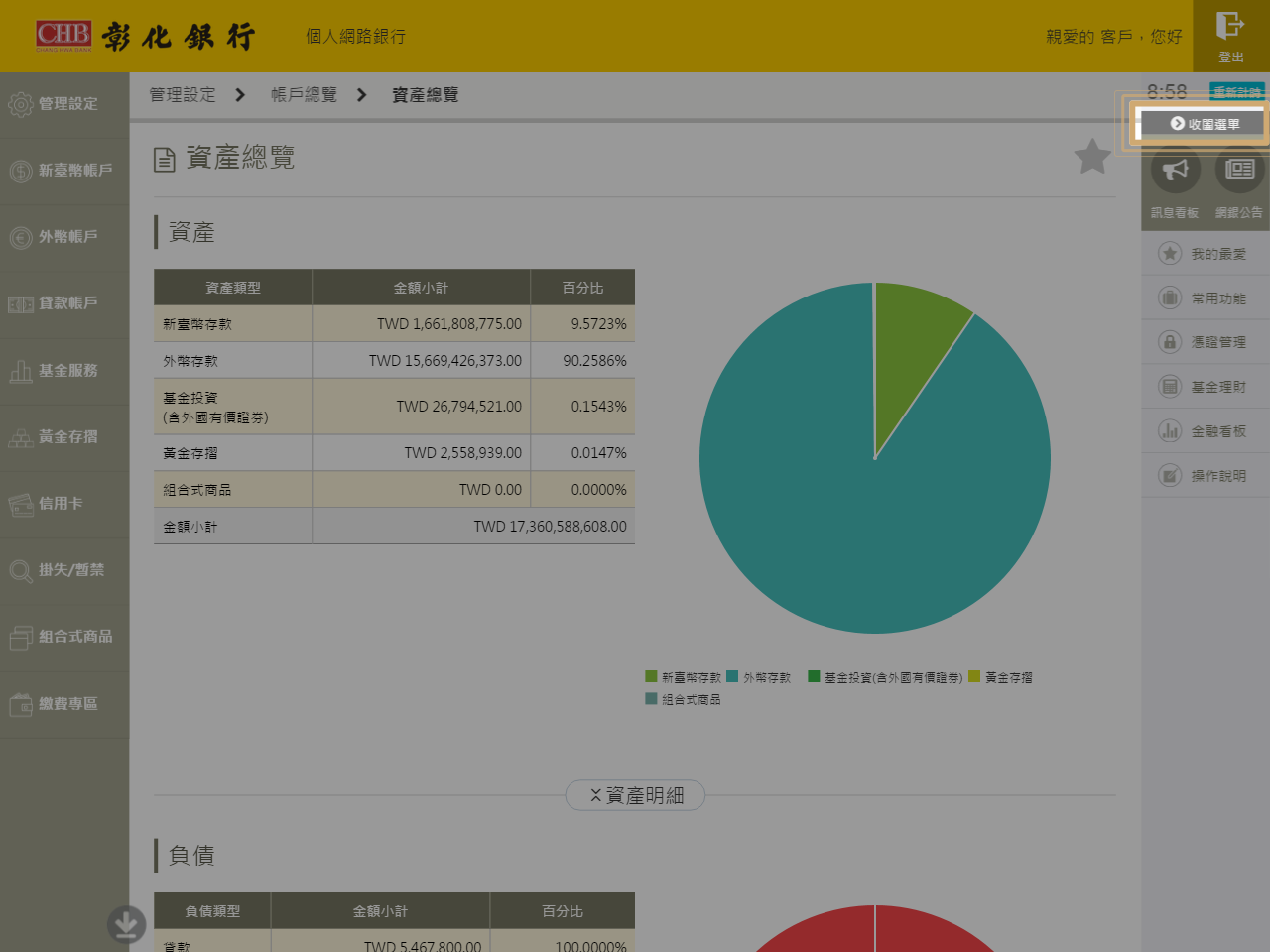 2. 點擊右上角的【收闔選單】,收闔右方選單